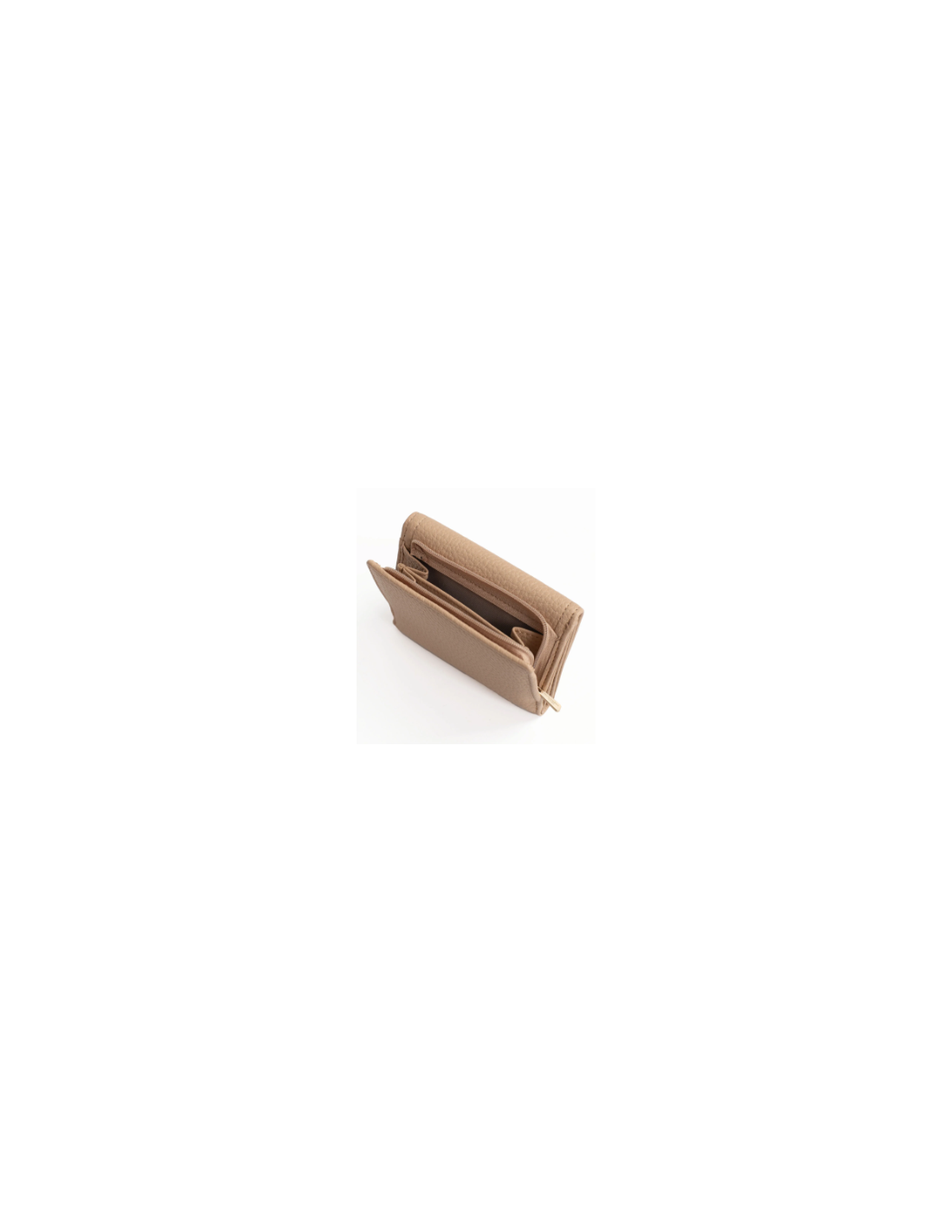 Intérieur : 1 volet. 1 compartiment principal. 1 porte-monnaie zippé à 2 compartiments. 4 poches plates. 6 emplacements carte. 1 poche billets