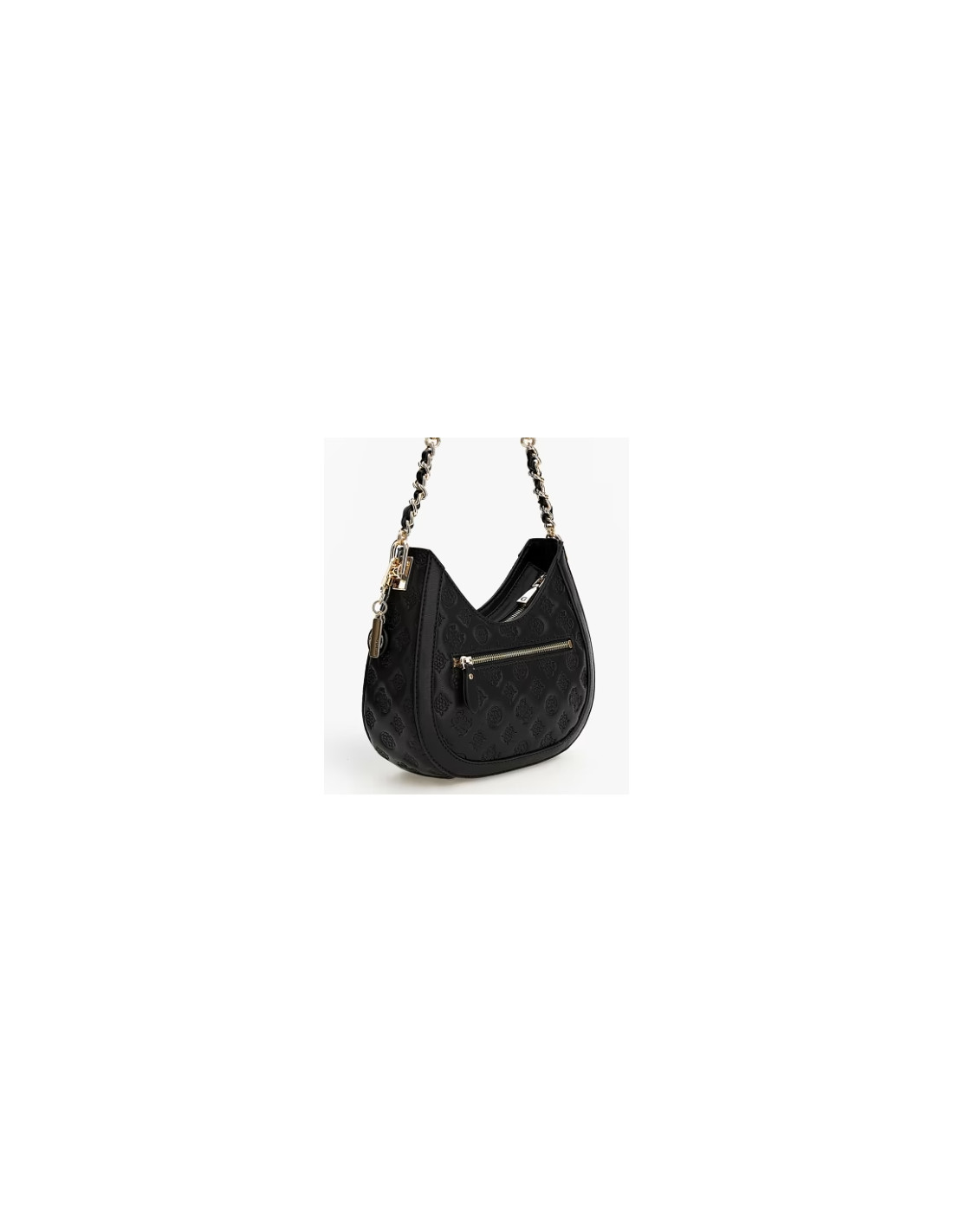 Fermeture éclair Pièces métalliques couleur or pâle 4G et logo pivoine imprimé Charm à la base de l'anse Inscription logo en métal sur le devant Poche avec fermeture éclair extérieure Dimensions 24x14x7 cm Anse avec chaîne tressée longueur env. 45 cm