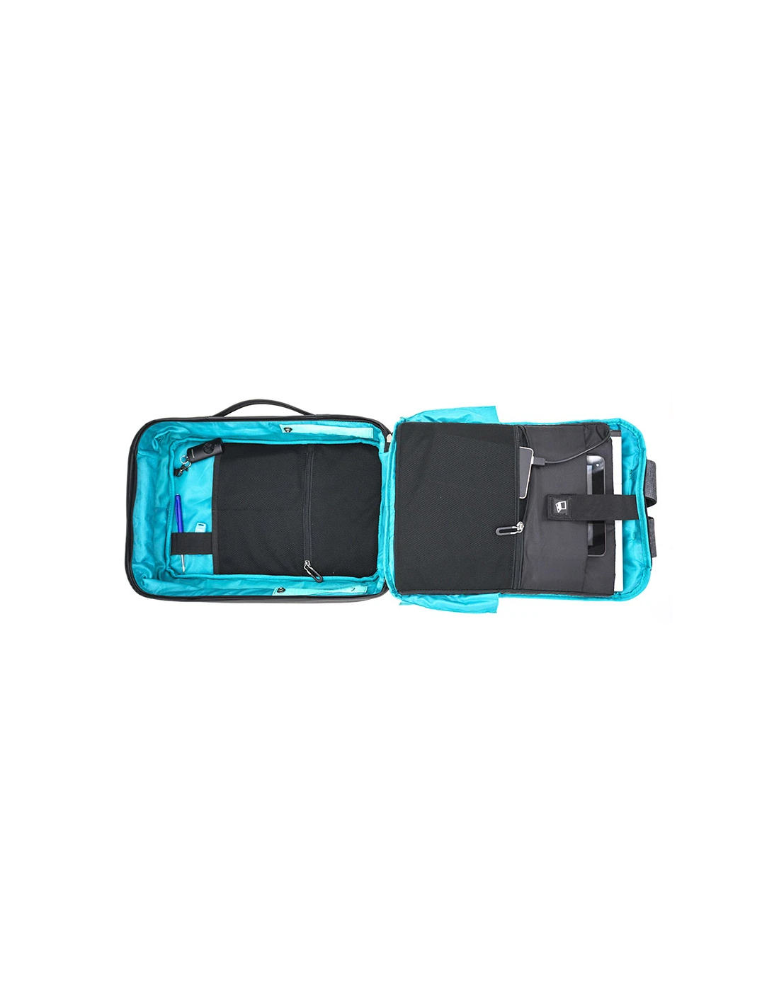 Sacoche ordinateur transformable en sac à dos, peut se positionner sur votre valise à l'aide de la sangle de maintien.le compartiment principal est à l'arrière pour plus de sécurité. Un câble USB relie la poche de l'ordinateur à l'intérieur du sac à une petite poche extérieure à l'arrière du sac. idéal pour loger un ordinateur 15"6 et une tablette, ce bagage peut s'ouvrir partiellement ou en totalité grâce à des pressions latérales.