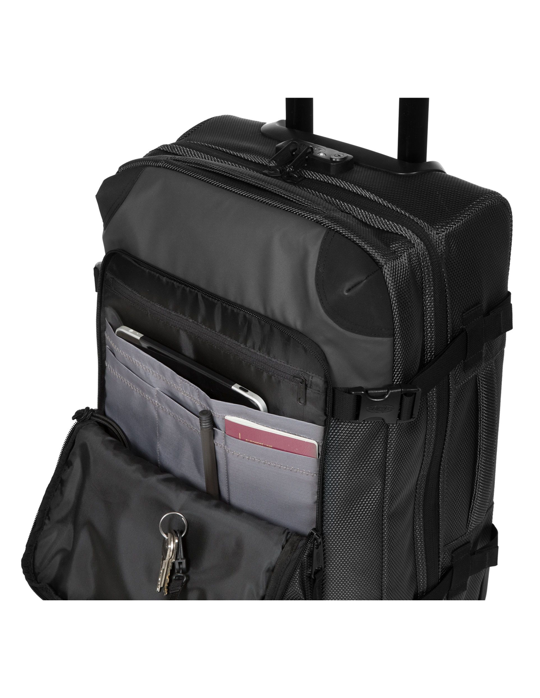 • Bagage à roulettes facile à transporter avec les poignées frontales et latérales