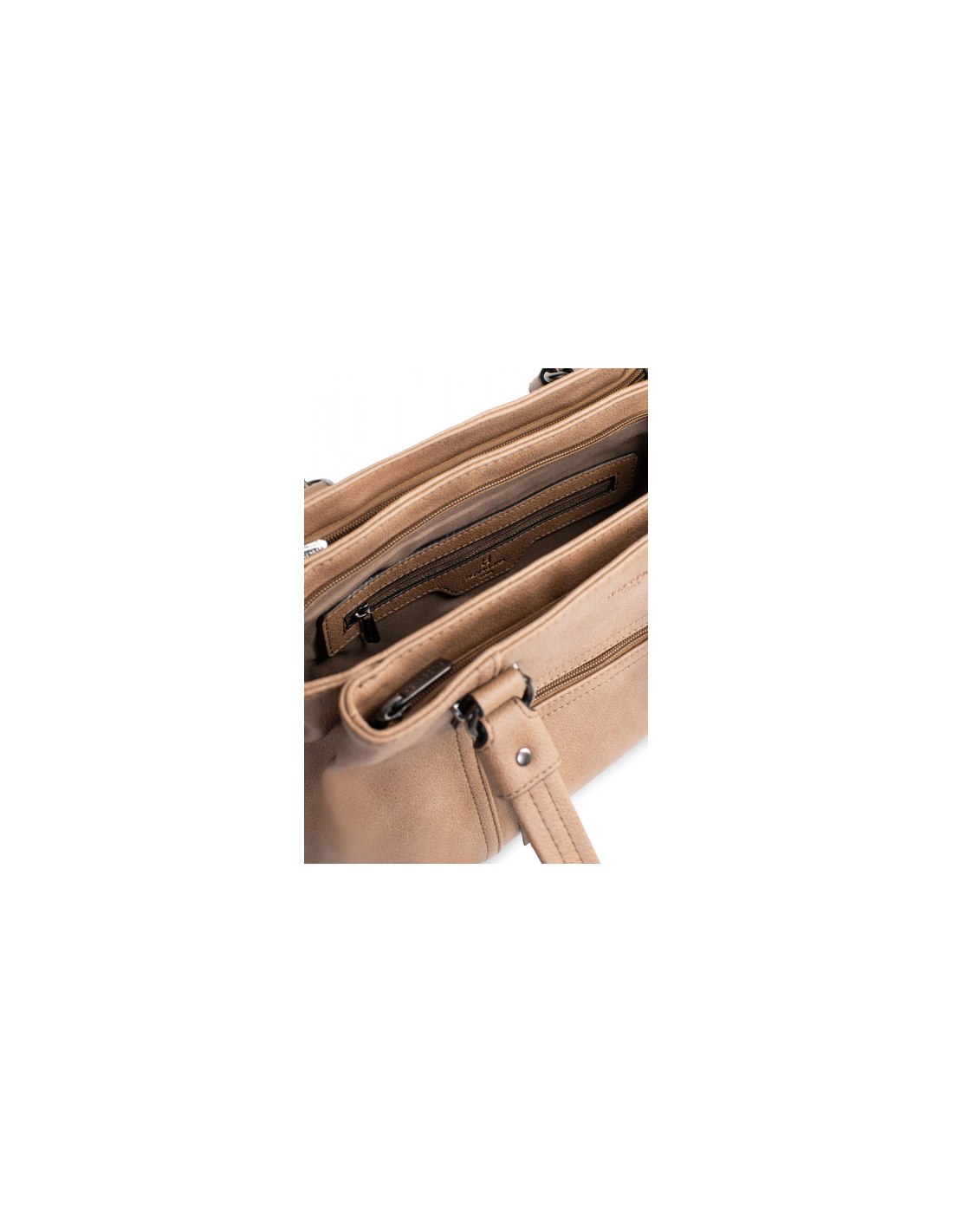 Intérieur : trois compartiments principaux avec une poche plate zippée et deux poches plates (dont un compartiment téléphone)