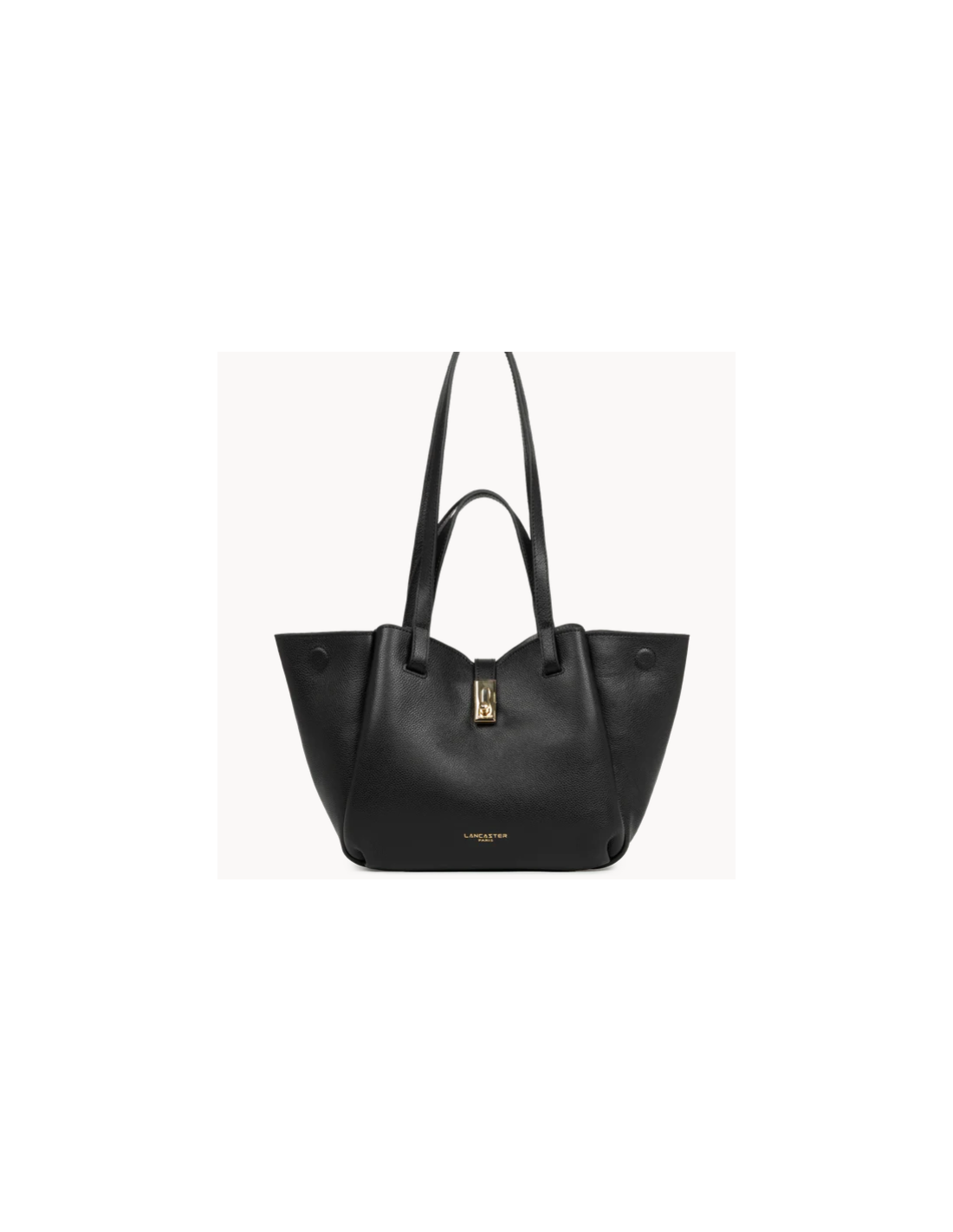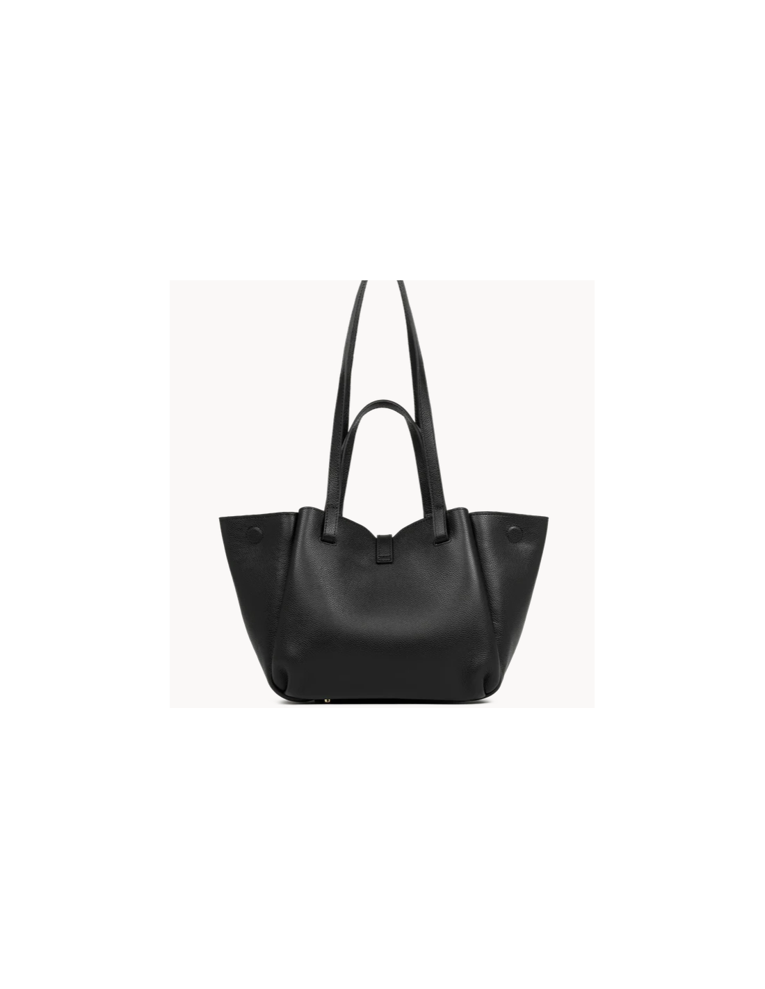 Il se ferme avec un rabat à fermoir. Grâce à des aimants discrets, les côtés du sac se replient pour offrir deux formes différentes : une version cabas ouverte ou une version plus structurée.